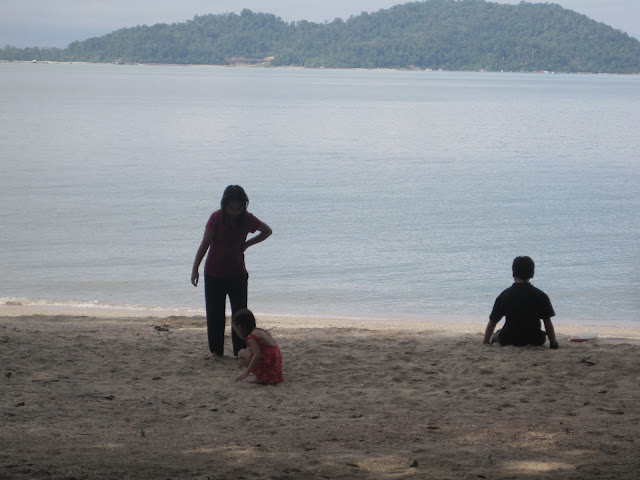 3 beranak ni sakan berendam...mama dan adik tgk je dari pantai